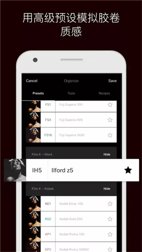 1、胶片预设库丰富多元,覆盖经典仿胶片、黑白复古、清新透亮等风格,部分滤镜支持强度调节,适配多元拍摄场景。