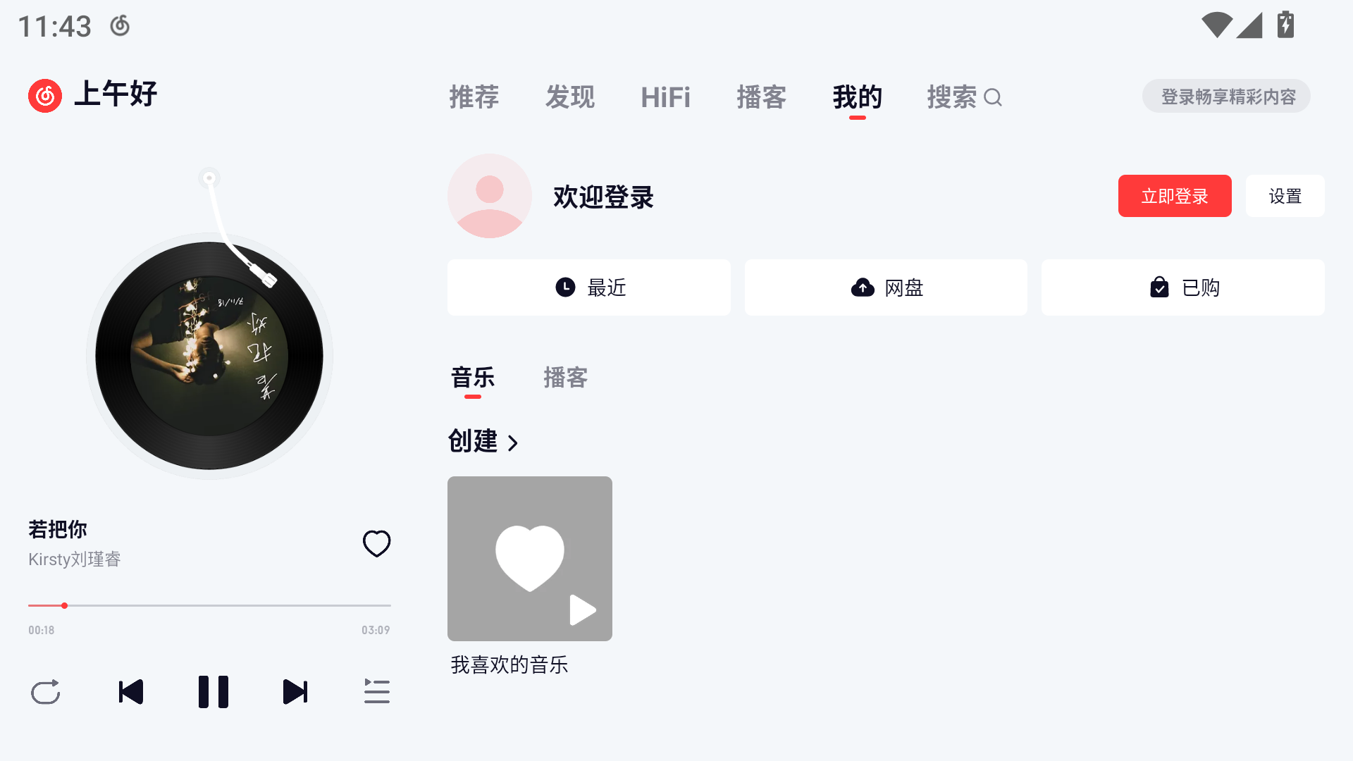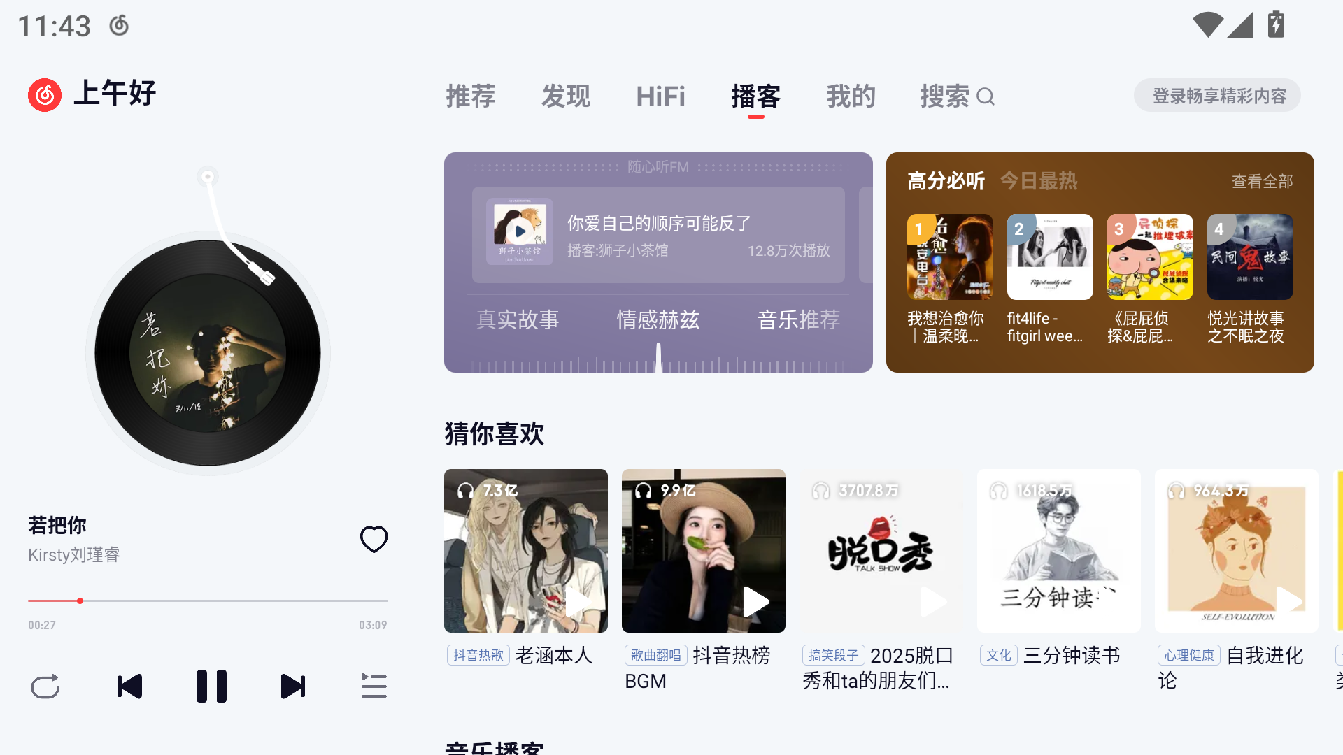 2、首页还会根据你听过的歌曲,进行精准推荐,点击自己感兴趣的即可开始播放。
