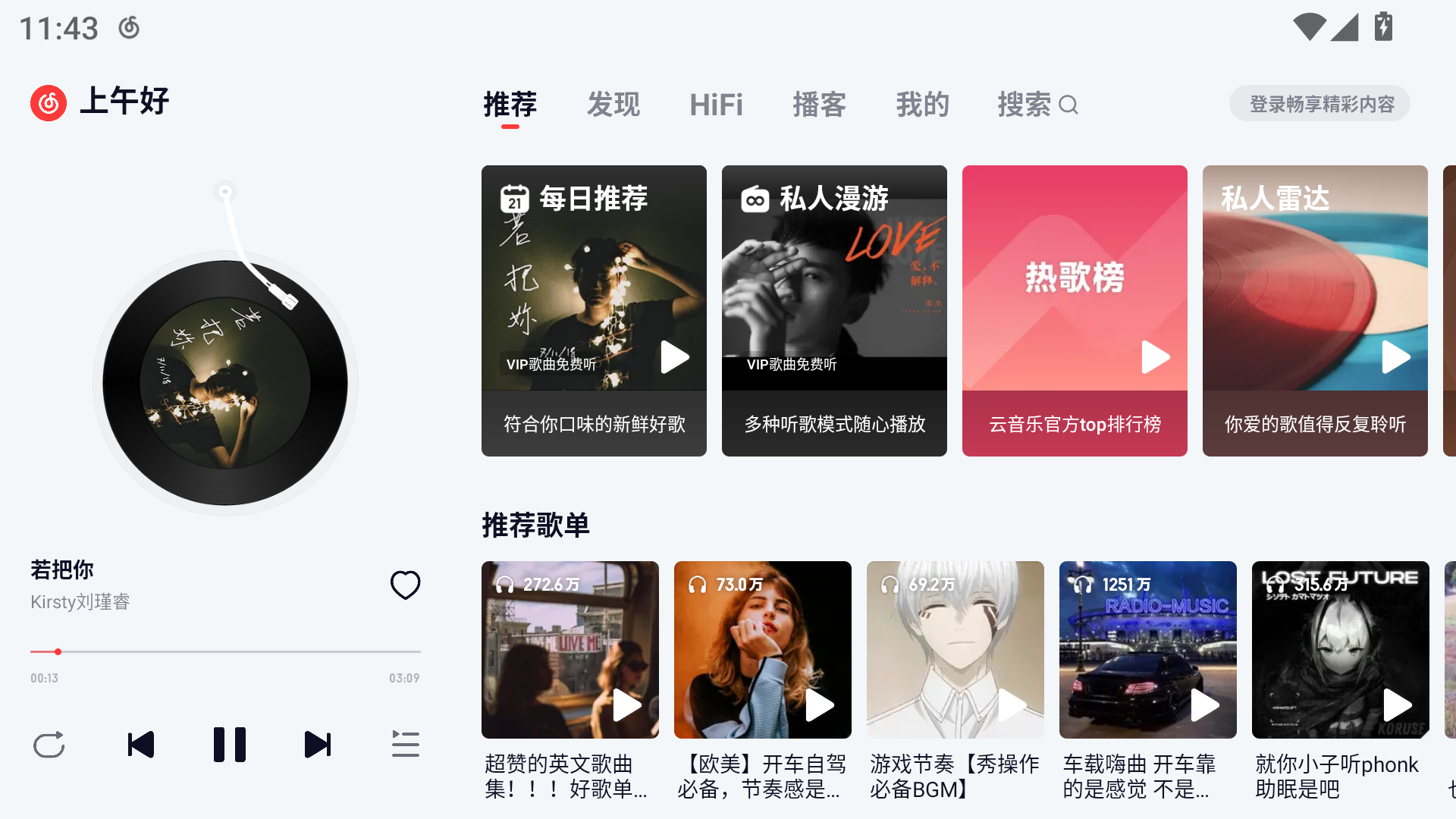 网易云车机版将优质的音乐服务带入了驾驶场景,通过针对性的优化为行车途中的音乐体验设立了新标准。其专为车载环境设计的界面既美观又实用,大按钮和清晰布局确保了驾驶过程中的操作安全与便捷。零广告的设计理念尤为难得,为听众创造了真正沉浸的音乐空间,让每一次驾驶都伴随着纯净的音符。