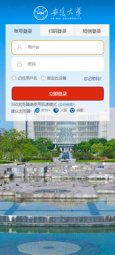 4、在智慧安大公众号页面,点击右下角综合服务——智慧安大,输入账号密码绑定:
