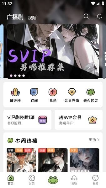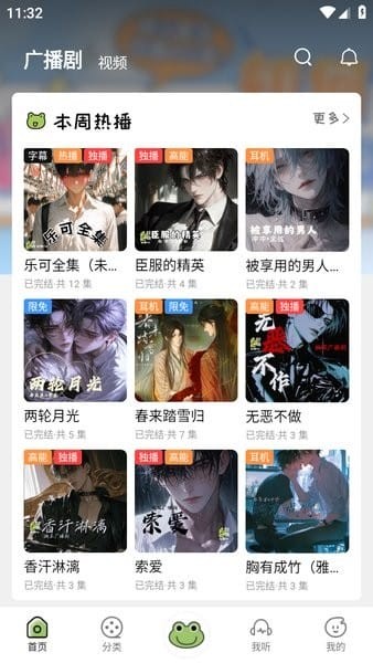 2、点击分类,可以按照不同类型查找,支持广播剧、小说以及漫画等各种资源。