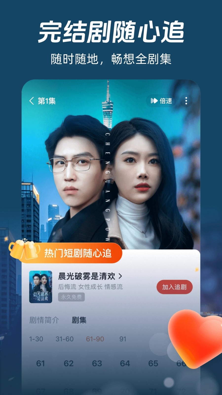 2、离线下载功能,可将喜欢的短剧缓存至本地,无网络环境下也能持续观影,节省用户流量。