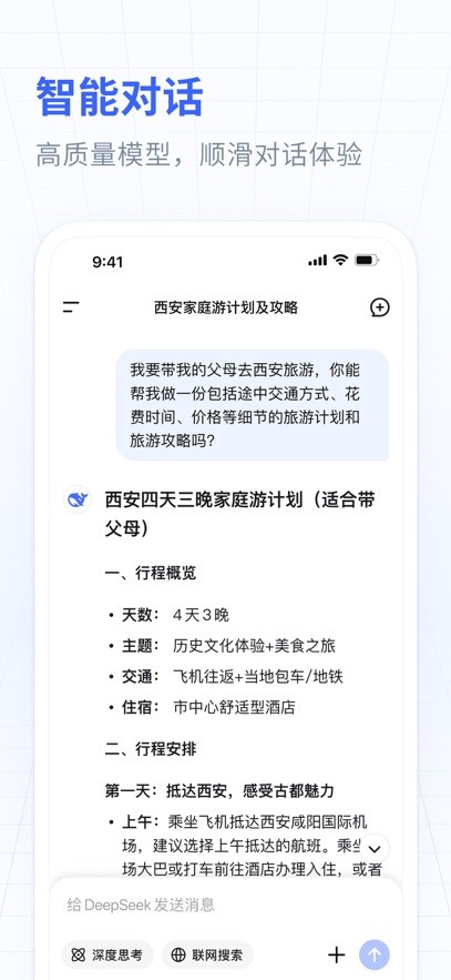 1、下载并打开deepseekAPP,完成手机号或邮箱注册登录,进入简洁的主界面就可以开始对话了。