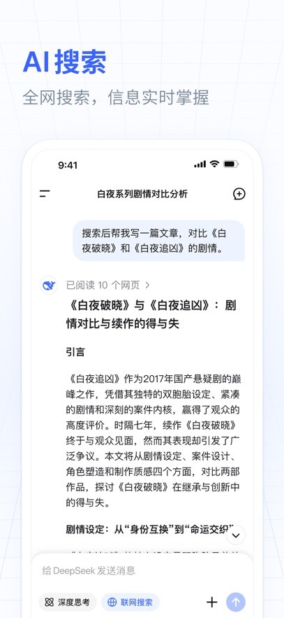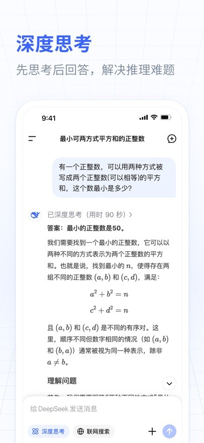 1、思维链展示功能,深度思考模式下分步呈现推理过程,助力逻辑验证与学习理解。