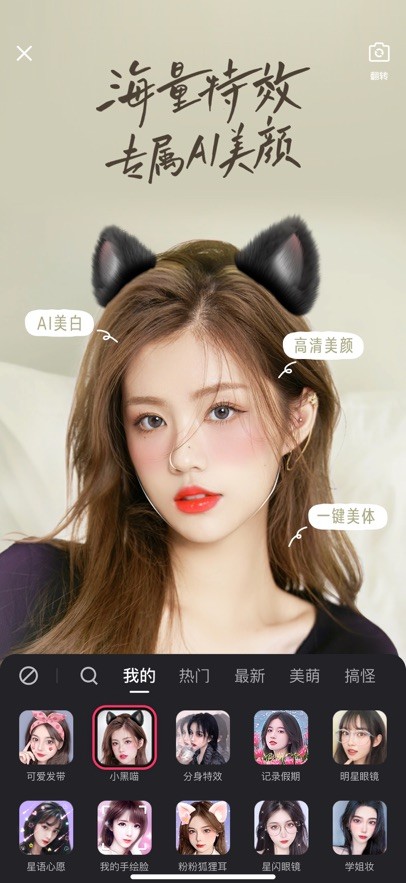 3、简易创作工具,内置基础美颜滤镜、音乐库和特效模板,支持一键发布和拍同款功能。