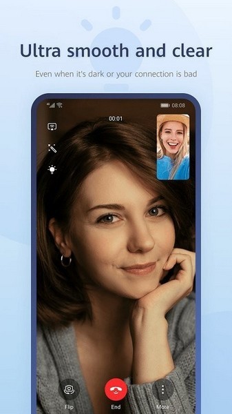 视频通话最怕画质差和卡顿,升级成为独立APP后,畅连一如既往支持最高1080P的视频通话画质,与此同时在车库、地铁等弱网环境下,还能利用超分技术补偿画质,实现清晰且流畅的通话体验。加上美颜功能和暗光增强的辅助,让视频通话的你时刻都能颜值在线。