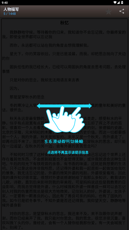 5、阅读页面可以通过触屏上下滑动来阅读全文,触屏左右滑动是文章翻页功能。