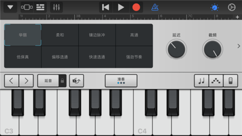 2、虚拟乐器演奏,包含键盘、鼓机、合成器等触控乐器,触感与音色贴近真实。