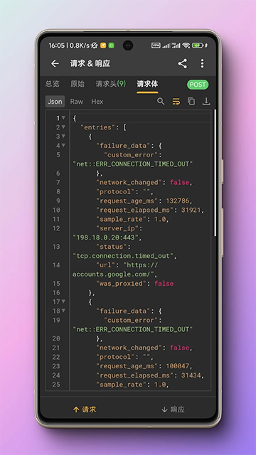 1、独立模式:无需依赖桌面端,手机直连抓包,支持多种数据视图及请求重放、保存等操作。