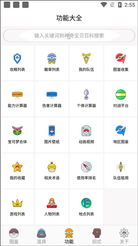 6、通过精灵的名称、编号、特性来进行搜索,帮助你找到自己喜欢的宝可梦。