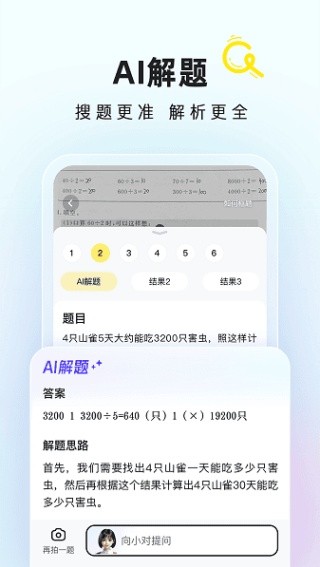 换一换快对作业最新版是一款专为学生设计的智能学习辅助软件,在这里你可以快速找到各科作业的详细解析与答案。能帮你轻松解决作业难题,提升学习效率。有丰富的习题库与在线答疑功能,随时为你提供学习支持。在自主学习中不断进步,学会独立思考与解题技巧。给你精准详细的解题思路与答案解析,展开轻松愉悦的学习辅助时光。开启个性化定制的学习辅导模式,掌握各类题型的解题技巧与方法,各类不同的题型都会在软件平台之中提供给大家。