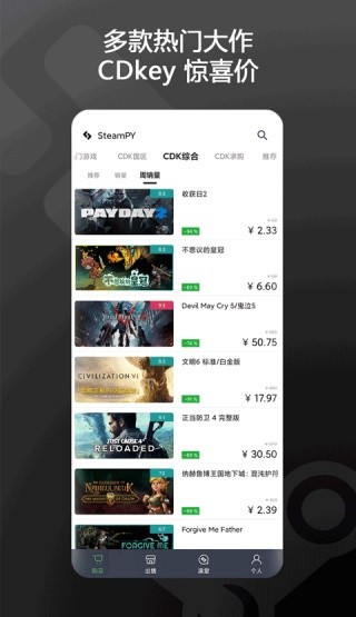 Steampy能提供便捷的线上游戏交易服务,在享受游戏乐趣的同时,还能通过合理的交易和交流提升自己的游戏水平和资产价值。社区还会定期举办各种有趣的活动和话题讨论,让你在游戏中结识更多朋友,丰富自己的游戏社交生活。无论是想要获取心仪的游戏饰品来装扮自己的角色,还是希望通过出售闲置物品赚取额外收入,让你的游戏之旅更加精彩。