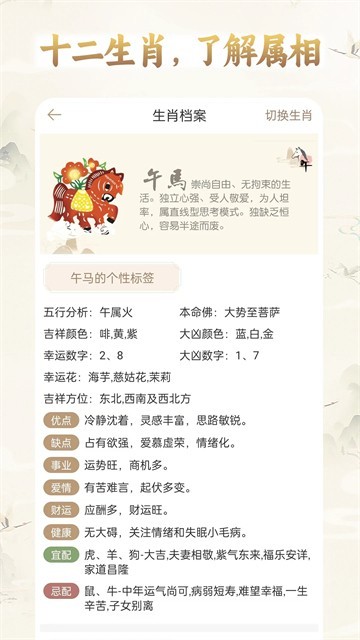 6、在查看运势时,找到切换或选择生肖的入口,选择你自己的生肖。