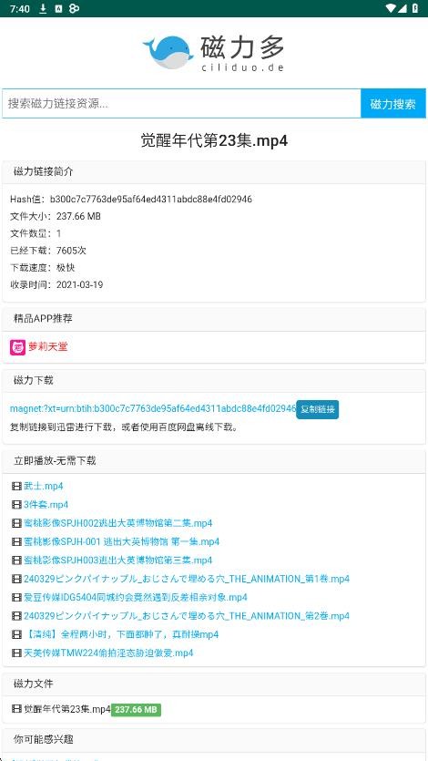 换一换磁力多是一款专注于磁力链接搜索与资源管理的搜索工具,拥有简洁的界面和丰富的资源。内置了先进的磁力搜索引擎,支持关键词和大小等多维度筛选,帮助用户快速定位所需资源。搜索引擎覆盖全网范围内的资源,包括各大视频或者漫画等平台的内容,资源丰富且更新速度快。支持高速下载,采用多线程下载技术,能够显著提升磁力资源的下载速度,让用户更快获得所需内容。内置用户社区功能,用户可以在社区中分享磁力链接和交流心得,增强软件的互动性和用户体验。