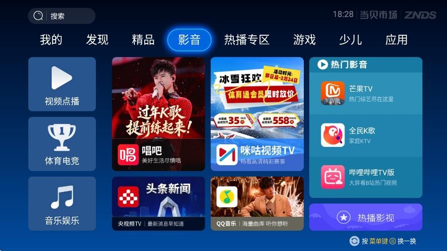 换一换当贝市场应用商店是一款专为智能电视和安卓电视盒设计的应用商店,收录近千款电视专属版应用和游戏,涵盖视频和音乐等多个领域。所有应用均经过严格筛选和测试,确保适配大屏设备且无兼容性问题,避免下载了用不了的困扰。热门内容全覆盖,腾讯视频和芒果TV等主流影视应用一应俱全,全网视频资源随心看。湖南卫视和浙江卫视等地方卫视同步高清直播,完全免费。QQ音乐和网易云音乐等,打造客厅音乐娱乐中心。动作或者体育等类型游戏应有尽有,支持大屏互动体验。