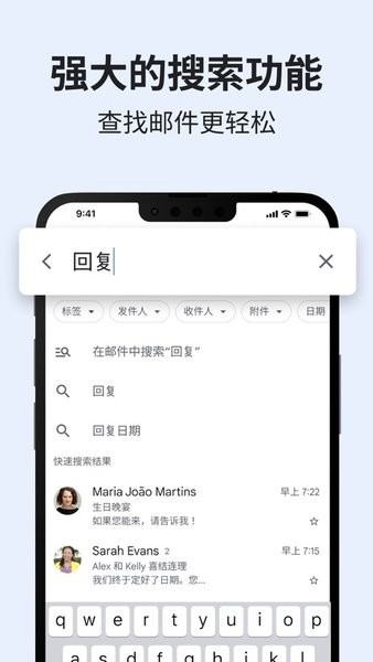 换一换谷歌邮箱是一款提供免费邮箱服务的全球邮件工具,自动将邮件分为主要、社交和促销等类别,帮助用户快速区分重要邮件和垃圾邮件。内置的机器学习模型可阻止垃圾邮件、网络钓鱼和恶意软件,确保用户收件箱的清洁与安全。支持关键词和主题等多种搜索方式,用户可以迅速定位到目标邮件。在输入搜索内容时,系统还会即时显示联想查询结果,并提供拼写建议,进一步提升了搜索效率。提供归档、删除和举报垃圾邮件等多种邮件整理工具,可轻松管理邮件,保持收件箱的整洁有序。