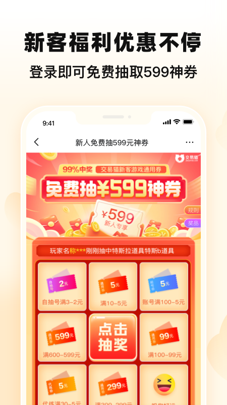 交易猫手游交易平台支持各种账号或者稀有道具等虚拟物品的交易,拥有强大的品牌背书和技术支持,让游戏玩家都能安心的使用。平台通过智能化设计简化操作步骤,缩短交易时间,支持支付宝等多种支付方式,满足不同用户需求。根据用户交易历史和偏好智能推荐商品。定期推出首充号折扣、道具秒杀等活动,让玩家享受更多实惠。