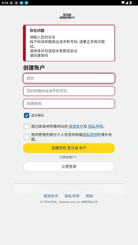 2、输入自己的电子邮件或者电话号码,以及亚马逊密码,即可成功登录。