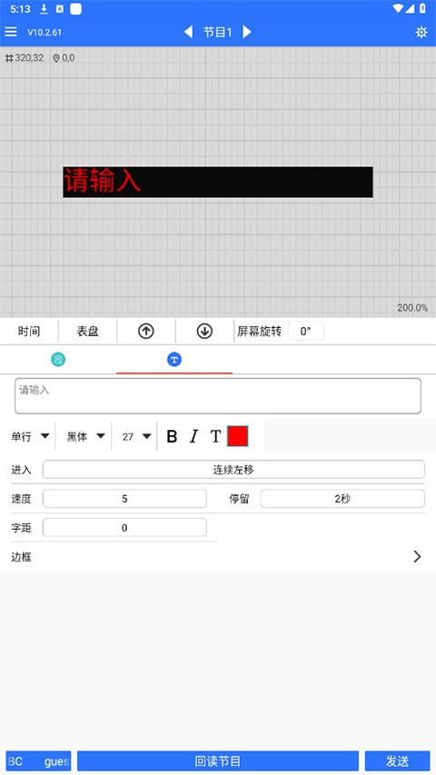 1、打开LED魔宝App新建一个节目,并选择文本中的文本特效将其设置为静态。