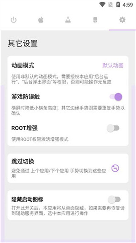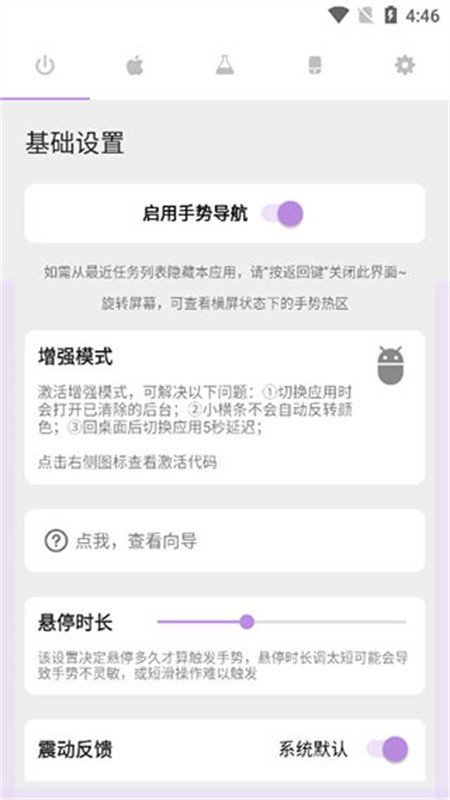 3、该软件配备了多样化的手势操控功能,在此处能够对苹果手机底部的小横条进行相关设置;
