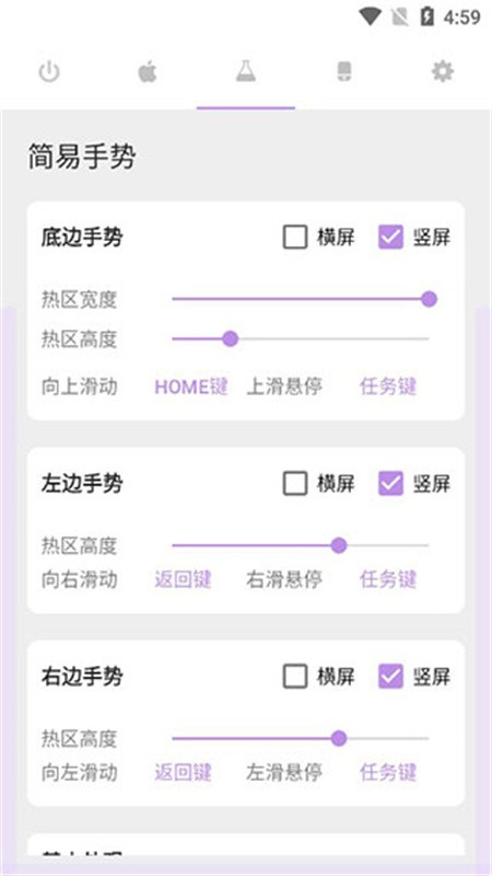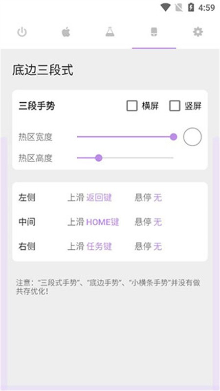 3、手势触发区域可以自由调整大小与透明度,还可将整个屏幕划分为多个响应区,不同区域执行不同任务。