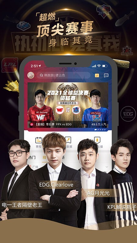 1、签约EDG等多支职业战队,以及梦泪等知名主播,提供专业解说与娱乐互动双重体验。