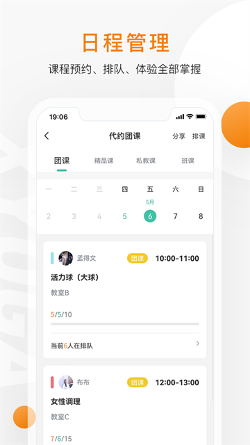 1、提供团课、私教课的在线排课、课表管理等功能,满足瑜伽馆多样化的课程安排需求。