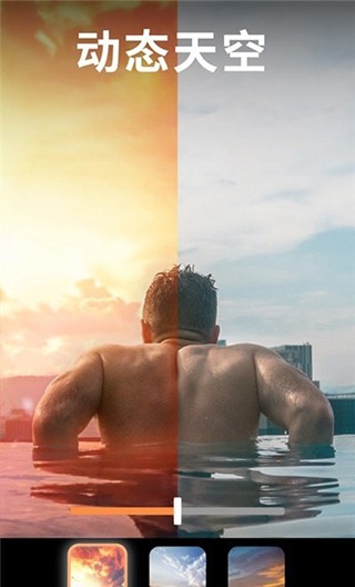 2、通过AI技术可自动识别天空区域并替换为动态的日落、星空等效果。