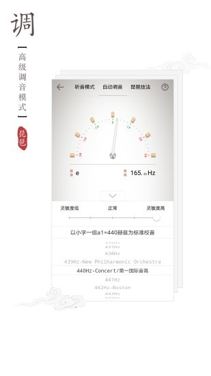2、三角钢琴调音模式,专门解决大阮等低音乐器的定弦需求。