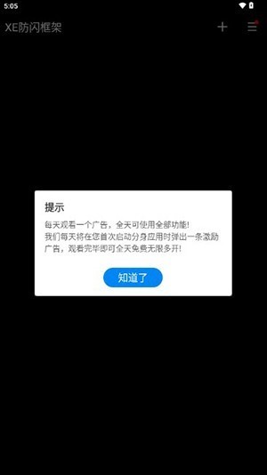 1、下载安装XE防闪框架app后,点击同意权限即可。