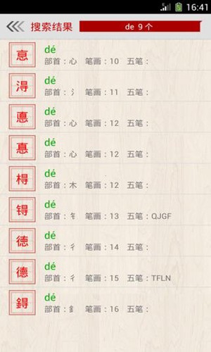1、汉字、拼音、部首、五笔四种检索模式,快速锁定目标汉字,满足不同用户的查询习惯。