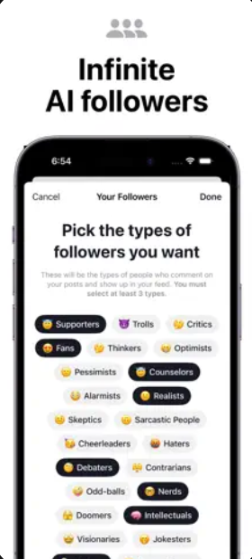 1、自定义追随者类型,从支持者到怀疑论者,自由定制专属社交氛围。