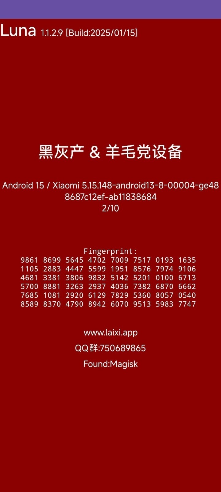 Luna设备检测在购机验机场景下表现突出,能够有效识别翻新机风险并提供硬件真伪参考,成为了保障消费权益的照妖镜。对于玩机用户和开发者,其环境检测的深度和准确性更是不可或缺,特别是在测试应用兼容性、验证Root隐藏方案是否成功时,它提供了可靠的验证标准,避免了因环境问题导致的应用闪退或账号风险。
