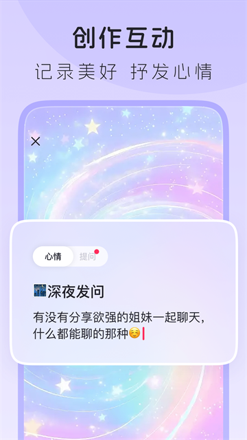 3、是帮助用户在匿名与真实之间,探索和建立符合自身舒适度的线上社交模式的实践空间。