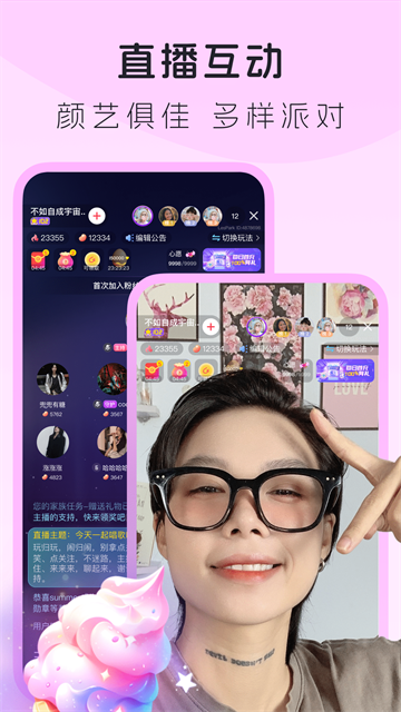 2、集成实时语音聊天、视频直播、在线K歌房等多种形式的实时互动与娱乐功能。