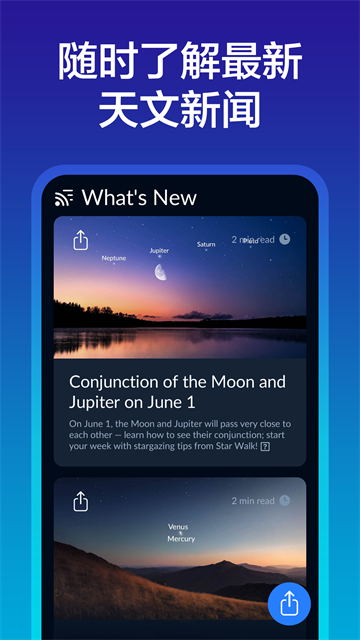 1、增强现实观星功能,使得识别星座和寻找行星变得像扫一扫一样简单直观。