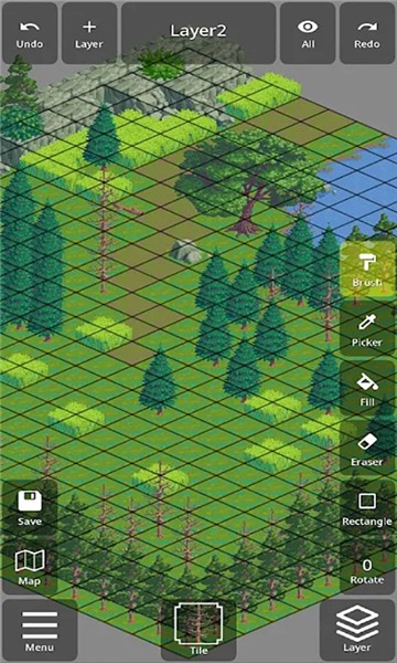 1、铅笔、图章、填充及矩形等多种绘图工具,支持瓦片的旋转与翻转操作。