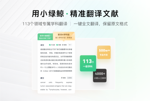 换一换小绿鲸是面向学术研究人员、学生及需要大量阅读英文文献的专业人士的智能文献阅读与知识管理工具。帮助用户更高效地处理、理解、管理以英文为主的学术文献。应用利用人工智能技术,提供强大的英文文献实时翻译、核心内容摘要提取、结构化笔记整理等功能,降低语言障碍,提升文献阅读和研究的效率。将用户在阅读学术文献过程中可能用到的翻译、笔记、管理、回顾等多种需求,整合到一个统一的数字化工作平台中。小绿鲸服务于在科研、教育、专业写作等领域有深度文献阅读和管理需求的用户。