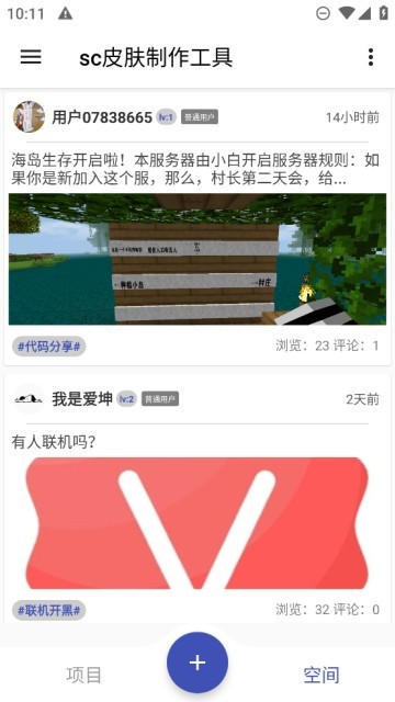 1、下载安装sc皮肤制作工具app,之后在手机上打开,进入主页。