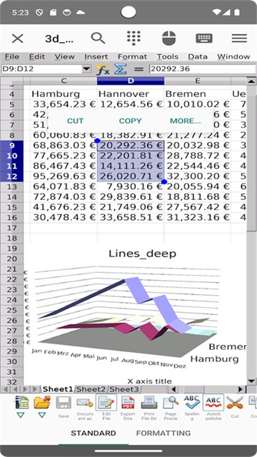 2、Calc的电子表格程序,支持公式计算、数据分析和创建图表等常见功能。