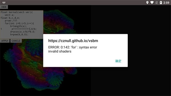 3、点击其中的“apply”可开启编辑权限,在文本框中输入代码数据,提高或降低着色器的显示质量。