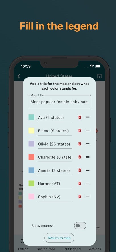 MapChart地图填色拥有多元地图模板覆盖现实与虚拟场景,颜色填充、图例添加等编辑功能精准便捷,搭配离线使用与高分辨率导出特性,适配多场景使用需求。色盲友好配色与细节调整工具,进一步提升了使用体验的包容性与专业性。无论是制作教学演示图、研究分析图,还是创意设计图,都能通过其灵活的定制选项高效完成。