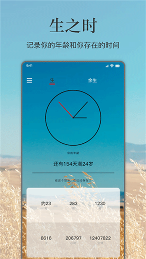 余生APP将抽象的哲思概念转化为精确到秒的数字与生动的回忆录,让用户在每一次打开应用时都能清晰地感知到时光的流逝,从而有效激发规划人生、珍惜当下的内在动力。从毫秒级的生命值计算到精美的图文回忆录生成,从灵活的农历公历双模提醒到直观的锁屏倒数壁纸,这款工具将厚重的人生课题与轻盈的数字体验完美融合。