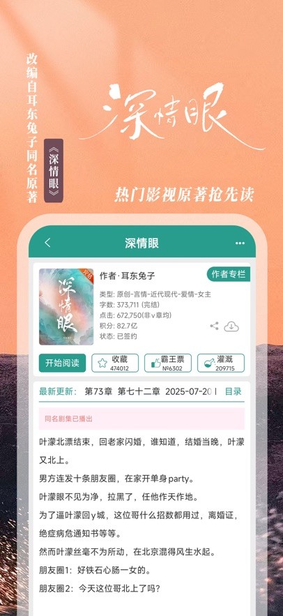 换一换晋江文学城手机版是官方出品的女性向原创文学阅读平台,堪称“随身携带的私人图书馆”。平台汇聚300万签约作品,覆盖言情、纯爱、玄幻等100种细分题材,每日新增超3000章节,热门影视IP原著同步更新。以“创作+阅读+社群”为核心,打造看、听、评、聊四位一体的沉浸式体验,凭借优质原创内容与完善互动生态,成为千万读者与作者的首选阵地,支持多场景畅读与跨设备同步。在线来搜索各种小说一键就可以来轻松的搞定。