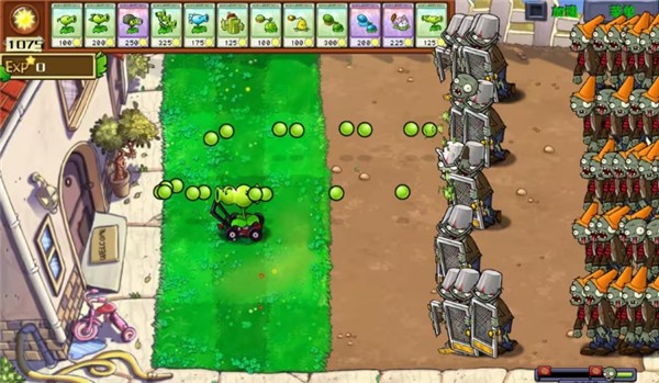 3、玩家在游戏中可以放置驾驶在小推车上的植物,植物会自动对僵尸进行攻击,需要合理布局植物的位置。
