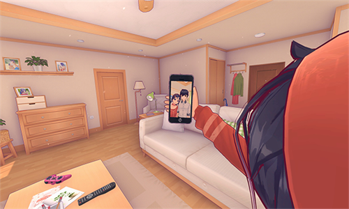 3、游戏采用3D第一人称,玩家扮演的主角从床上醒来,首先拿起桌子上的手机。