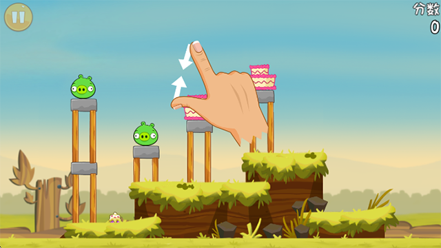 3.将肥猪全部砸到就能过关,分数可以获得星星,当星星到达一定数量时,可以解锁隐藏关;