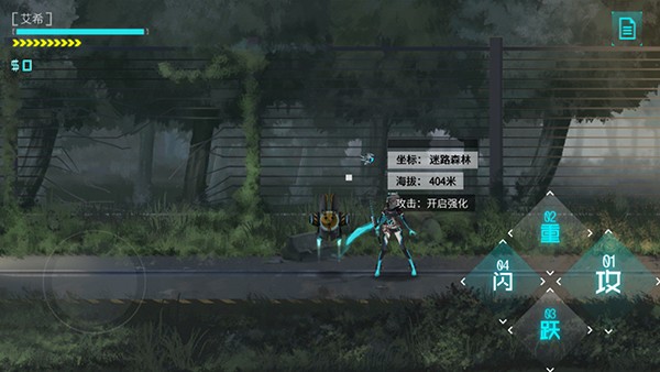 2、我们可以通过左边屏幕来控制艾希的左右方向移动,右边分别是闪、重、攻和跃,也就是闪避、重击、普通攻击和跳跃,玩家需要灵活运用不同的按钮来获得更好的游戏体验。