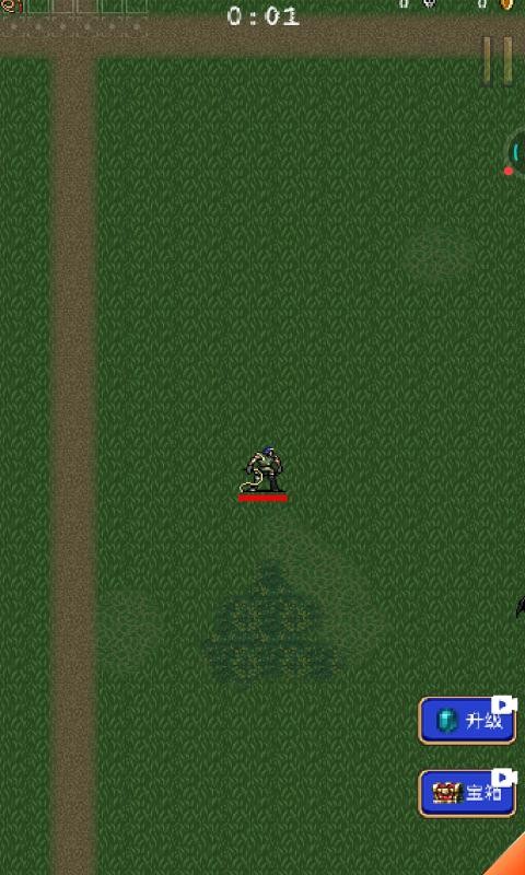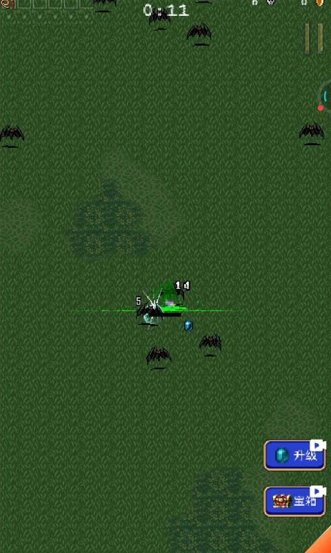 3、操控角色移动规避敌人,依靠自动攻击的武器输出,收集怪物掉落的经验宝石帮助大家来提升等级。