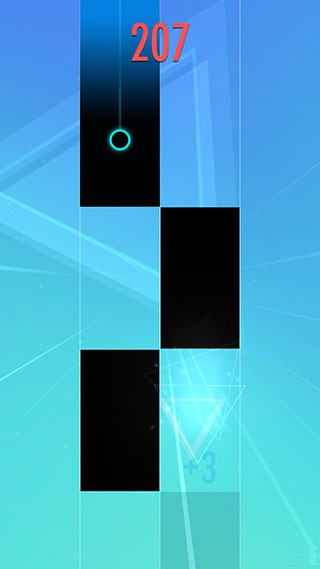 2、跟随音乐节奏点击下落黑块,避开白块区域,连续精准点击可保持音乐流畅播放,错点或漏点则游戏终止。